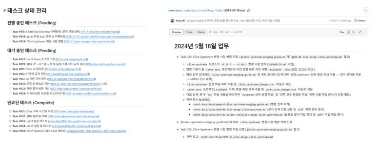 Specific Task Instructions and Progress Tracking π: You'll learn how to give specific tasks to the AI using individual task documents in the docs/tasks/ folder, and how to manage the process by having Caret write code, update documents, and even report task completion (updating checklists, recording logs). It's like keeping a journal together!