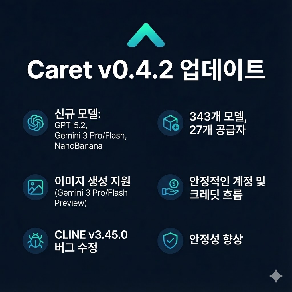 Caret v0.4.2 업데이트: 최신 GPT-5.2, Gemini 3 Pro/Flash, 나노바나나 이미지, Cline v3.45.0 픽스