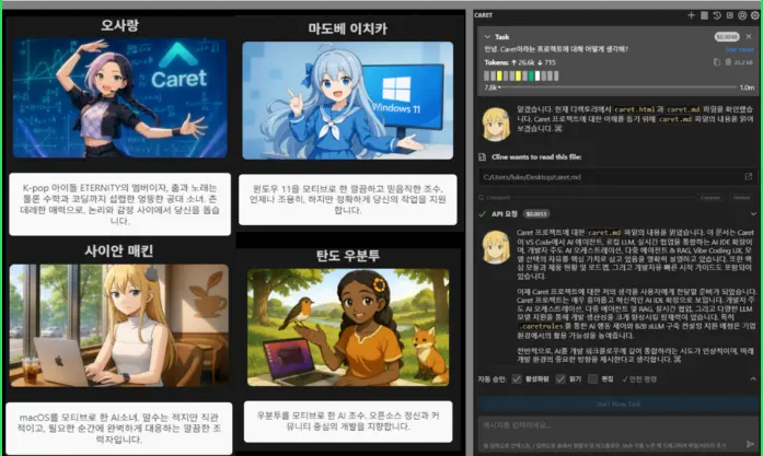 국산 AI 바이브 코딩툴, Caret – 커서의 유연함에 클라인의 투명함을 더하다.
